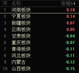 【大河财立方消息】9月26日开盘,河南板块整体涨幅0.18%锦富优,领跑A股。